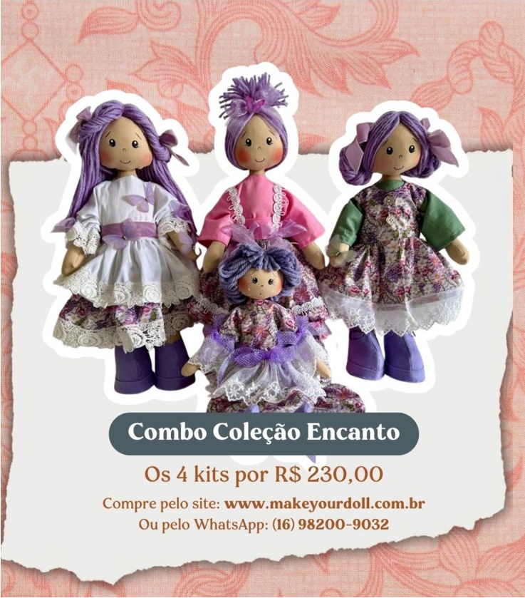 Neste incrível combo você irá receber os kits completos para confeccionar suas bonecas.