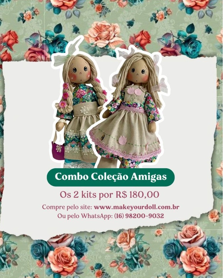 Neste incrível combo você irá receber os kits completos para confeccionar suas bonecas.